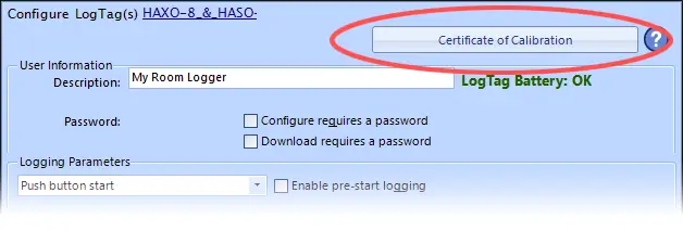 Every LogTag temperature logger is tested in the factory as part of our quality control. The test results are stored in memory and you are able to print your own calibration certificate using the LogTag Analyzer software.